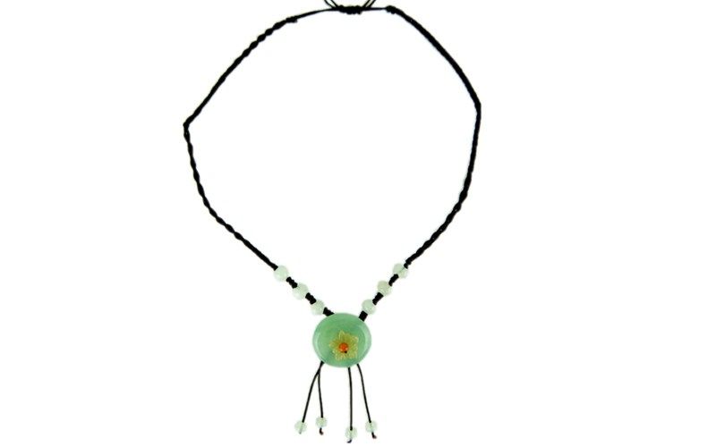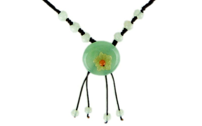 Handmade Ladies Oriental Chinese Floral Jade Adjustable Necklace jneck1