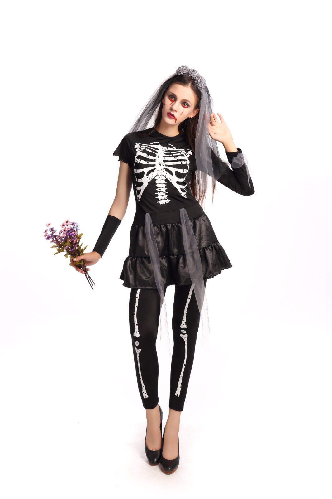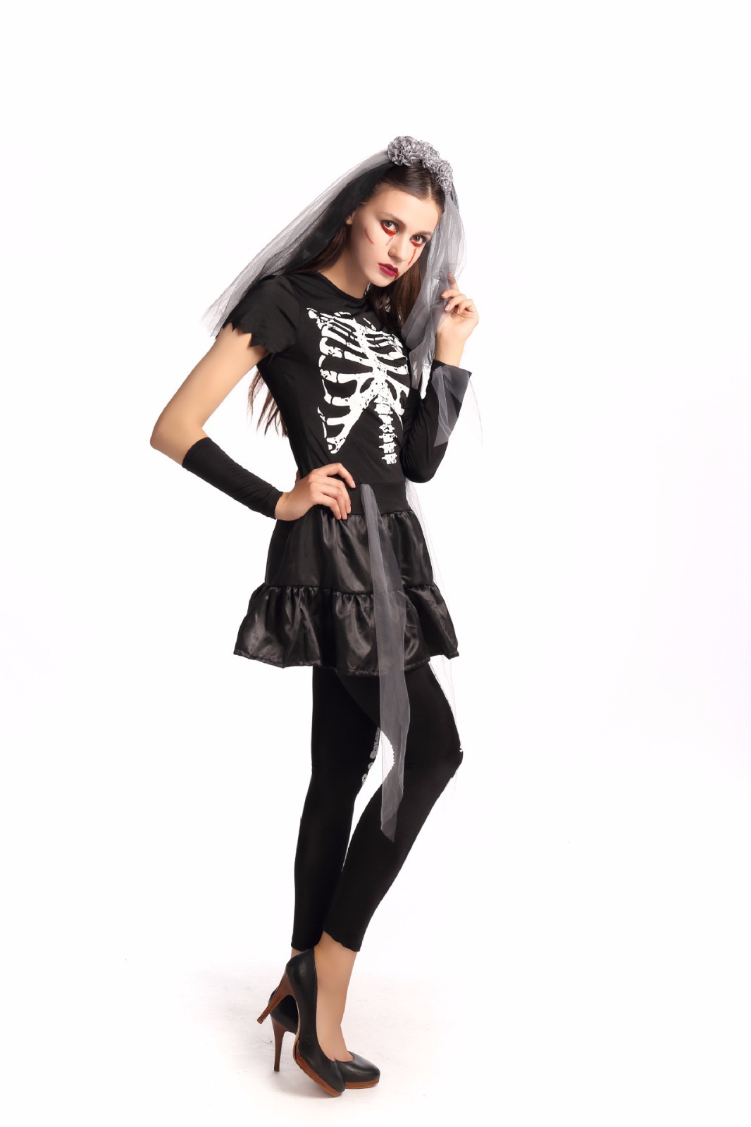 Ladies Ghost Bride Black Wedding Halloween Costume Fancy Dress Party ladcos43