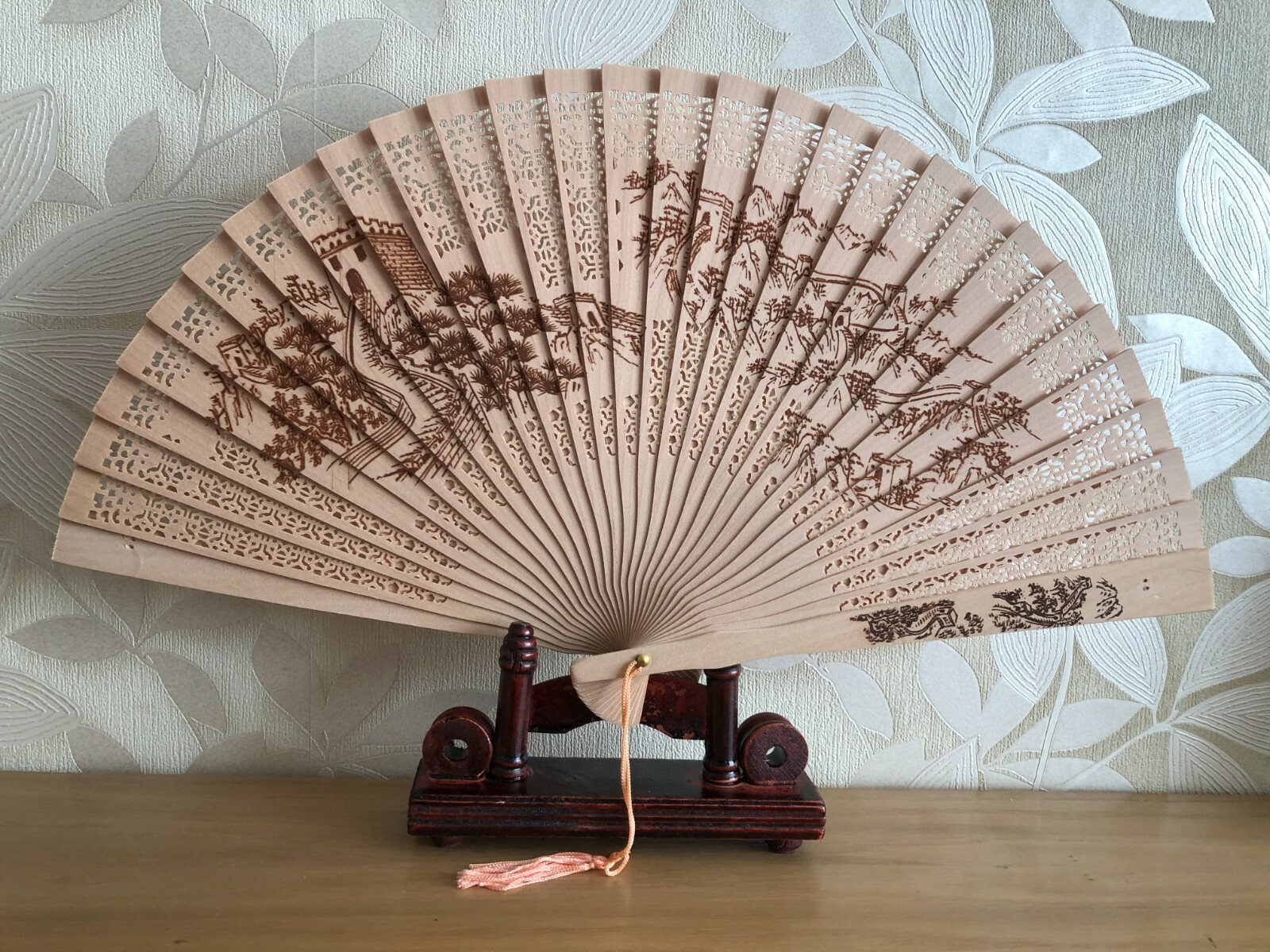 Great Wall of China Chinese Oriental Elegant Sandalwood Hollow Hand Fan