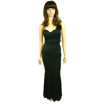 Gorgeous Ladies Womens Black Diamond Studs Metallic Floral Long Evening Dress