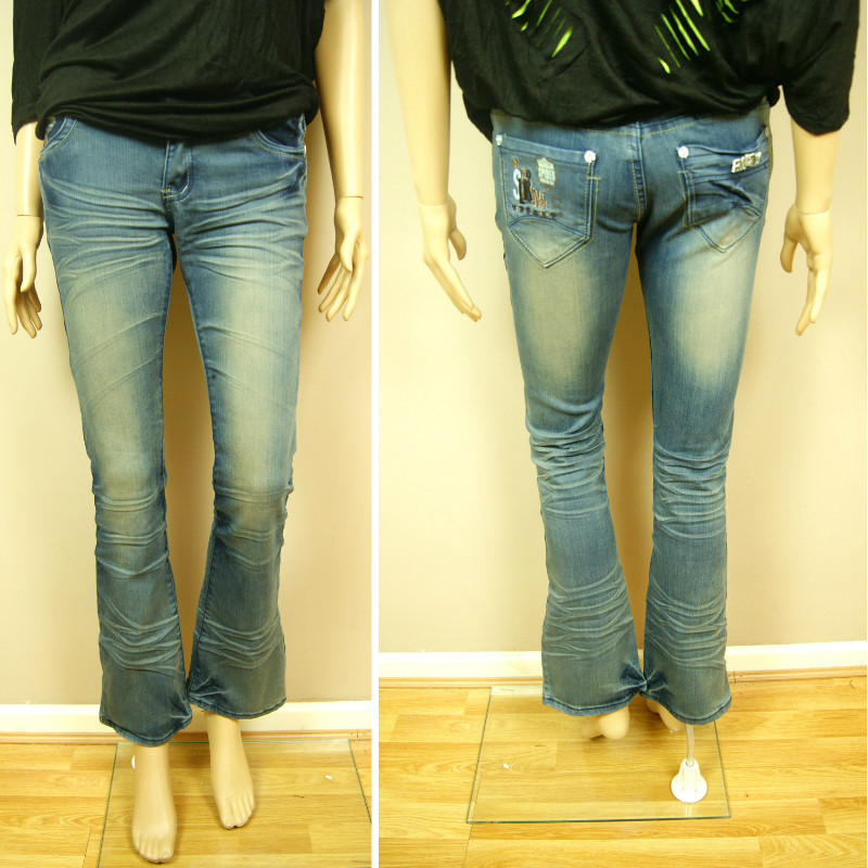 New Hot Fashion Gorgeous Ladies Womens Washed Denim Flared Kick Flare Jeans