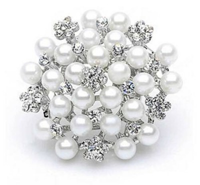 New Ladies Womens Large Silver Pearl Flower Diamante Brooch Pin