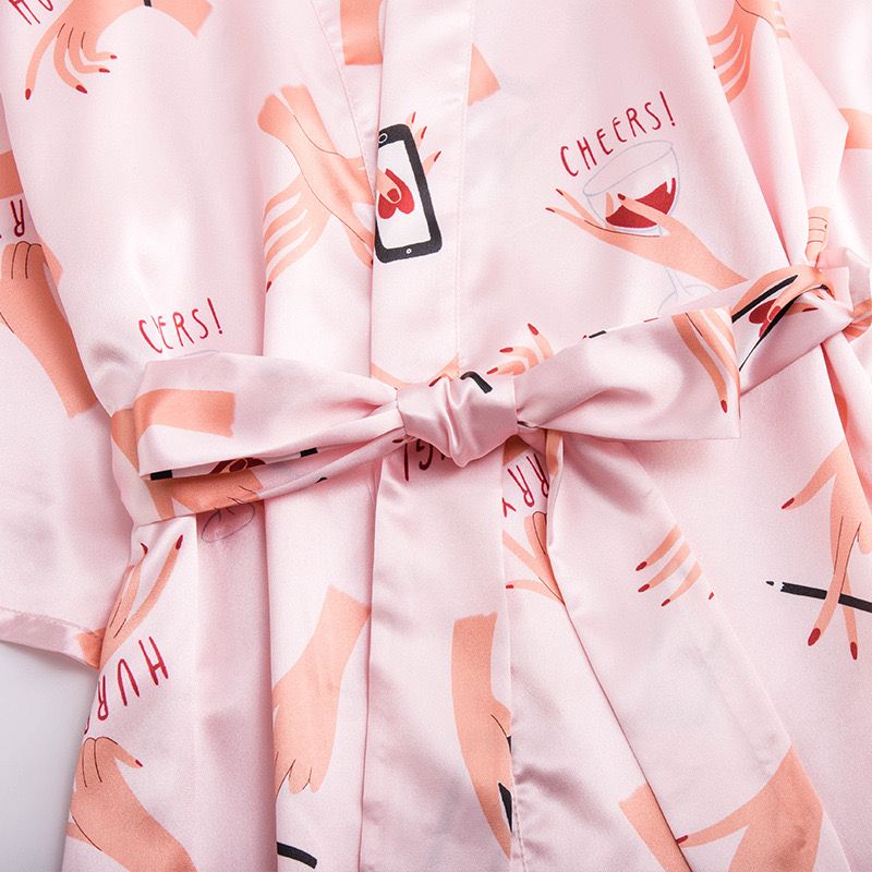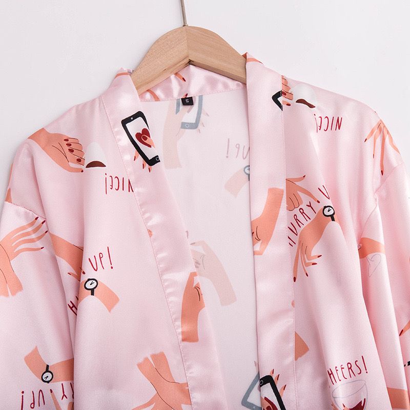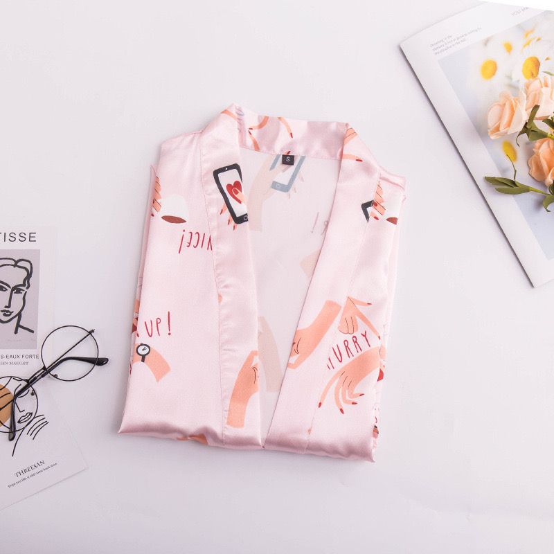 New Ladies Womens Satin Hand Gestures Gown Dressing Gown Bath Robe ladpj303