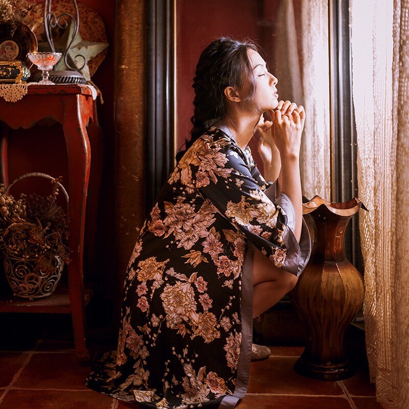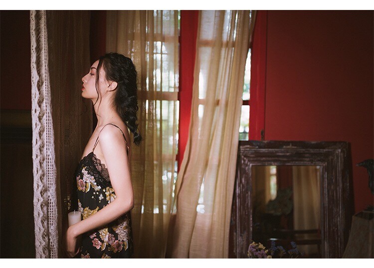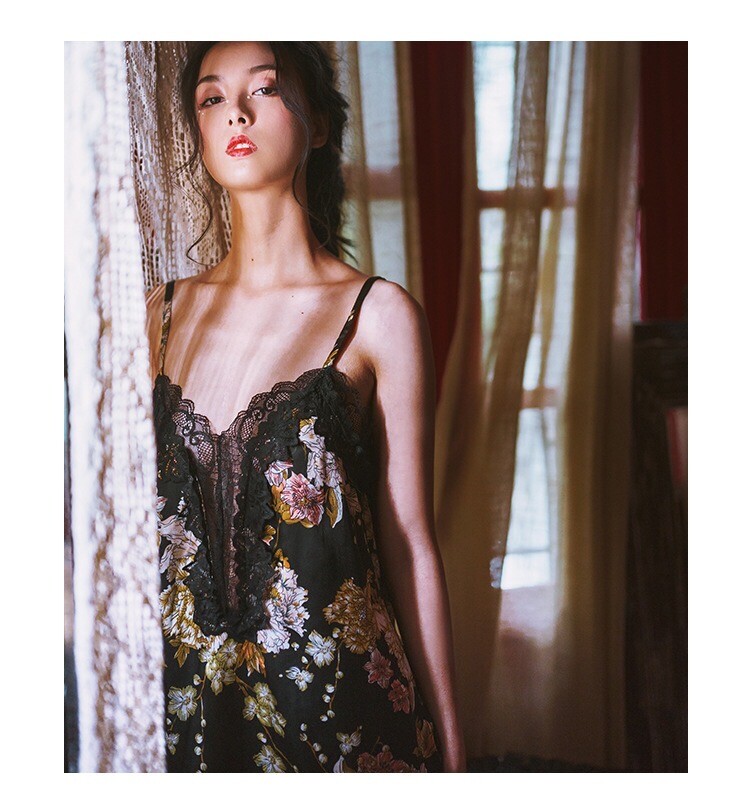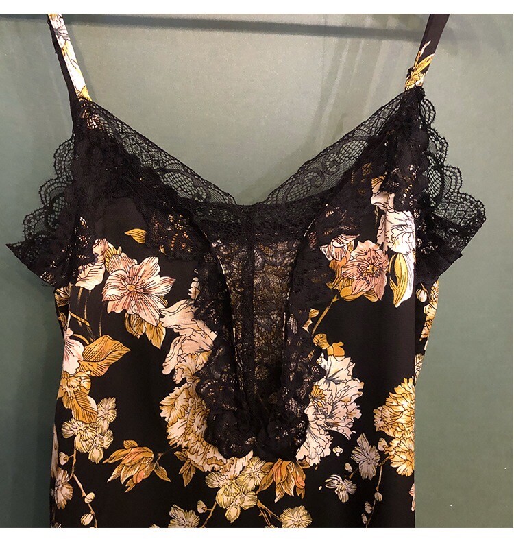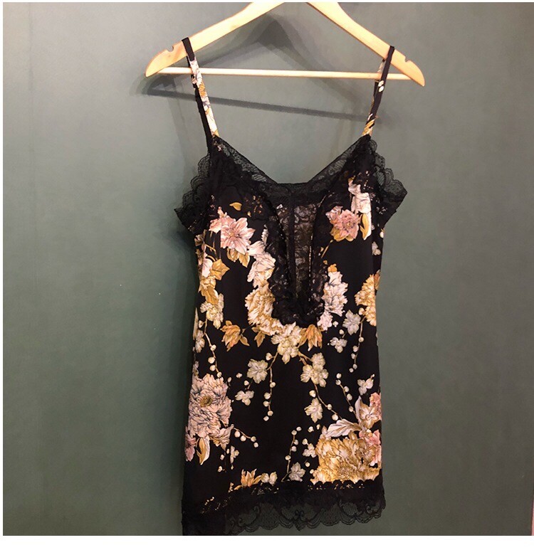 Ladies Luxurious Oriental Fans Satin Short Cami Dress Style Nightdress Nightie