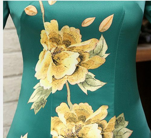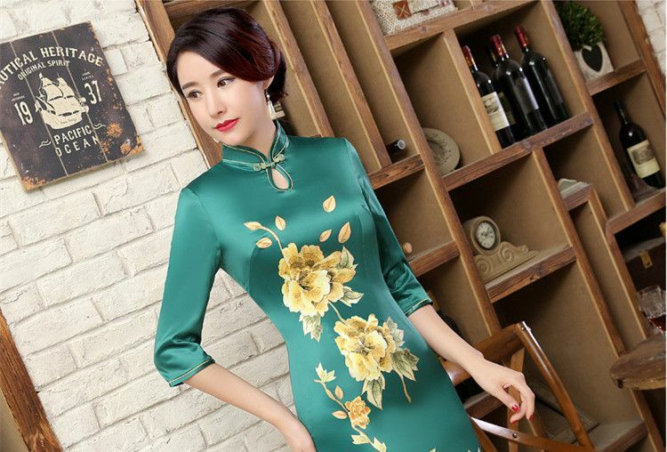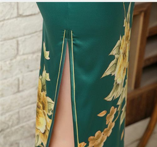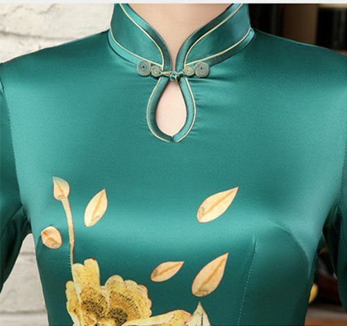 New Luxurious Golden Flowers Green Chinese Long Dress Cheongsam Qipao lcdress23