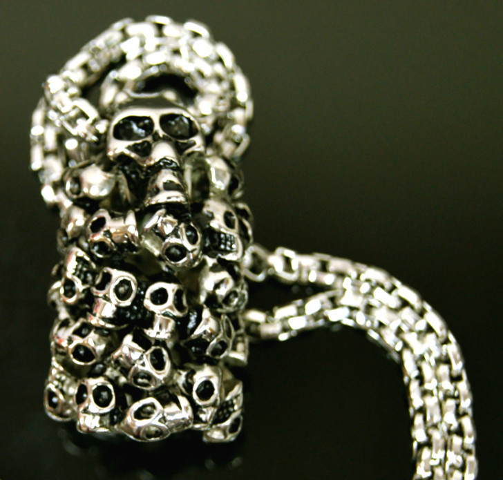 New Stainless Steel Horrific Gothic Stack of Skulls Pendant Chain Necklace Set