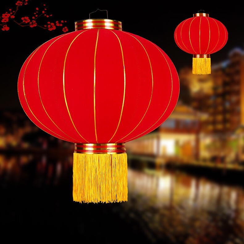 Chinese New Year Red Felt Lucky China Red Gold Trim Hanging Tassel Decor Lantern