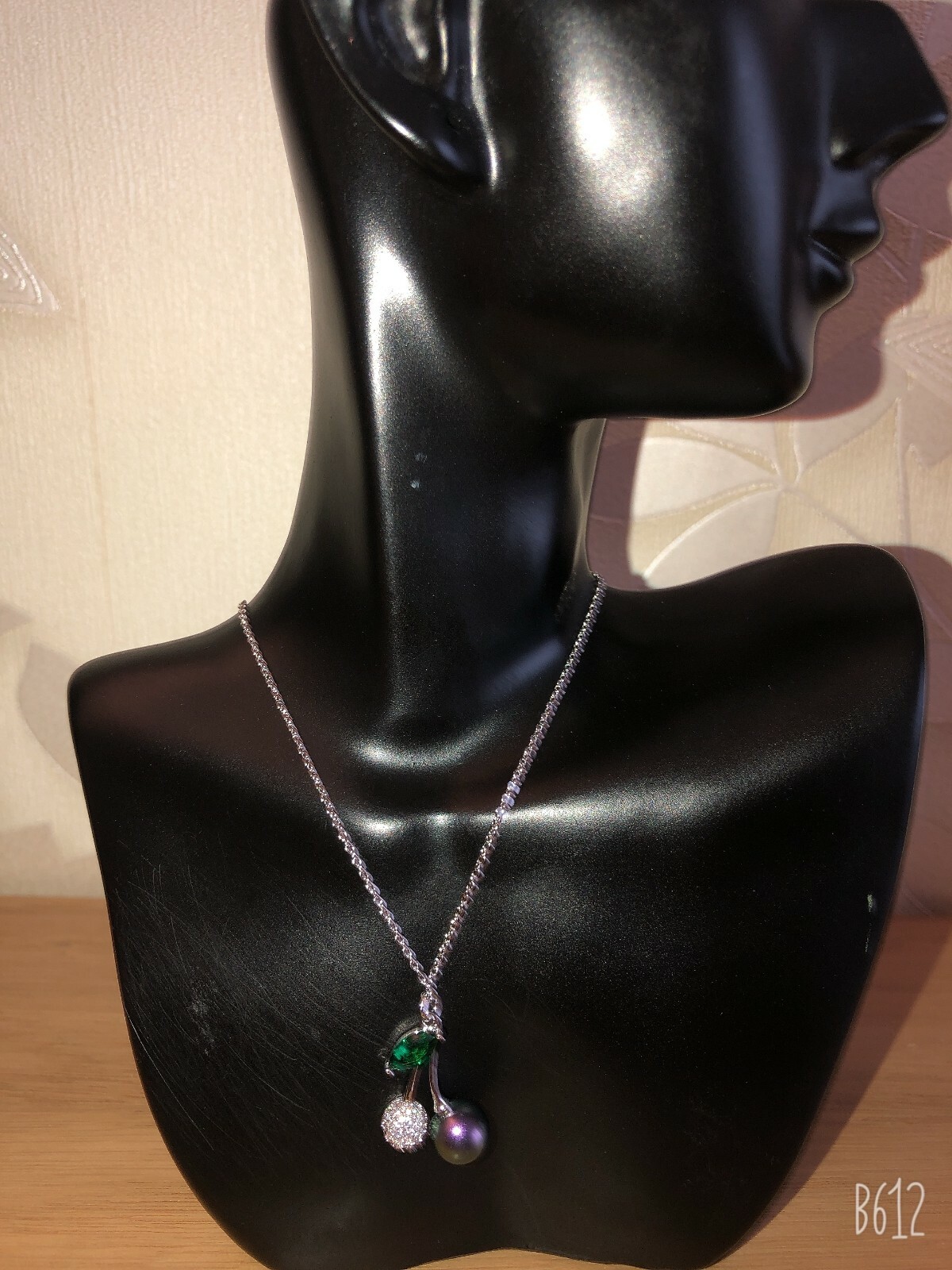Silver Ladies Beautiful Purple Cherry Green Gemstone Pendant Elegant Necklace